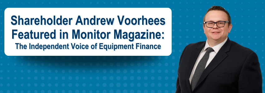 Monitor Magazine 2024 Monitor 101+ Issue with an article titled “Preserving and Collecting a Deficiency Balance After Repo and Sale.” Repossession and sale of equipment rarely covers the debt owed to an equipment financier after repo and sale. Andrew outlines how following