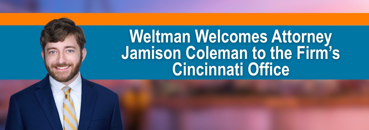 “We are so fortunate to have Jamison continue his career at Weltman,” says Shareholder and Cincinnati Office Managing Attorney