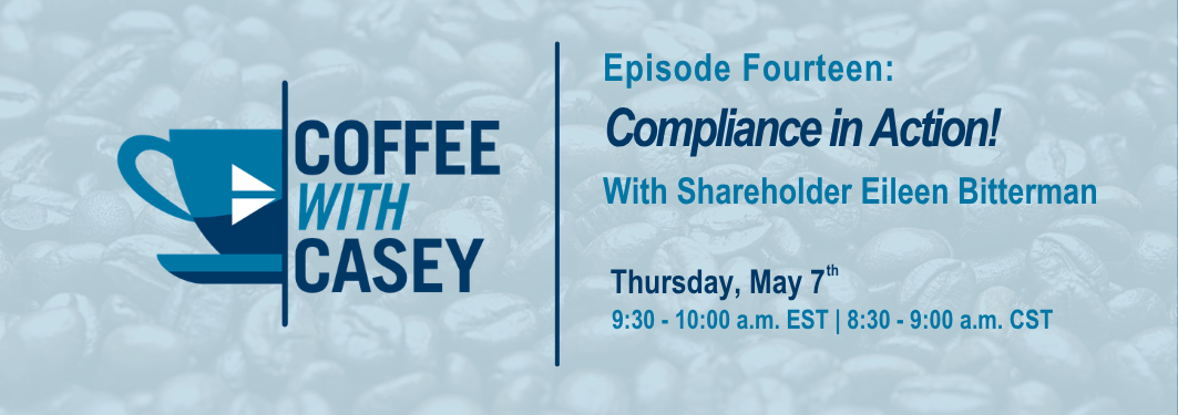 Pour yourself a cup and join us for Episode 14 of Coffee With Casey, featuring host Casey Hicks, Shareholder, Real Estate Default Group Chair, and Chicago Office Managing Attorney. In this episode, Casey will be joined by Shareholder and Compliance Officer Eileen Bitterman for an insightful conversation on the evolving role of compliance in today’s collections environment and why it matters more than ever!